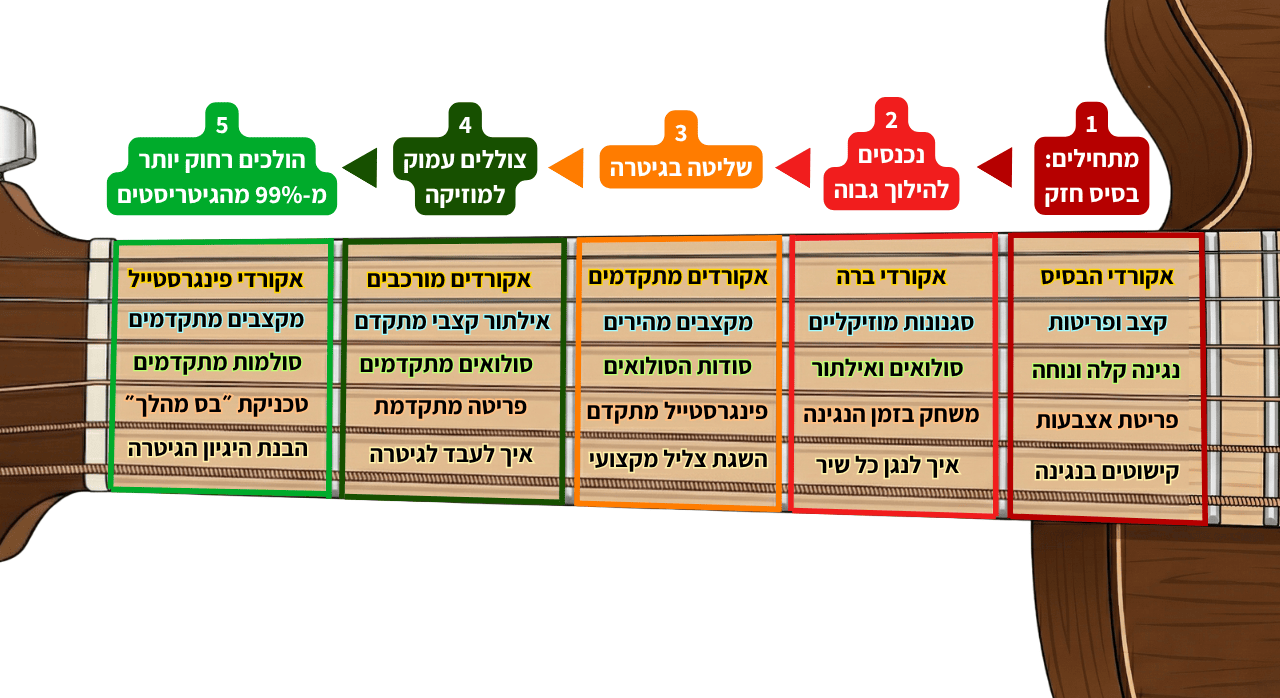 התכנית היחידה בישראל לגיטריסטים מתחילים שמכילה את כל עולם הגיטרה במקום אחד - ומטיסה אתכם שנות אור מעבר לכמה שירים קלים