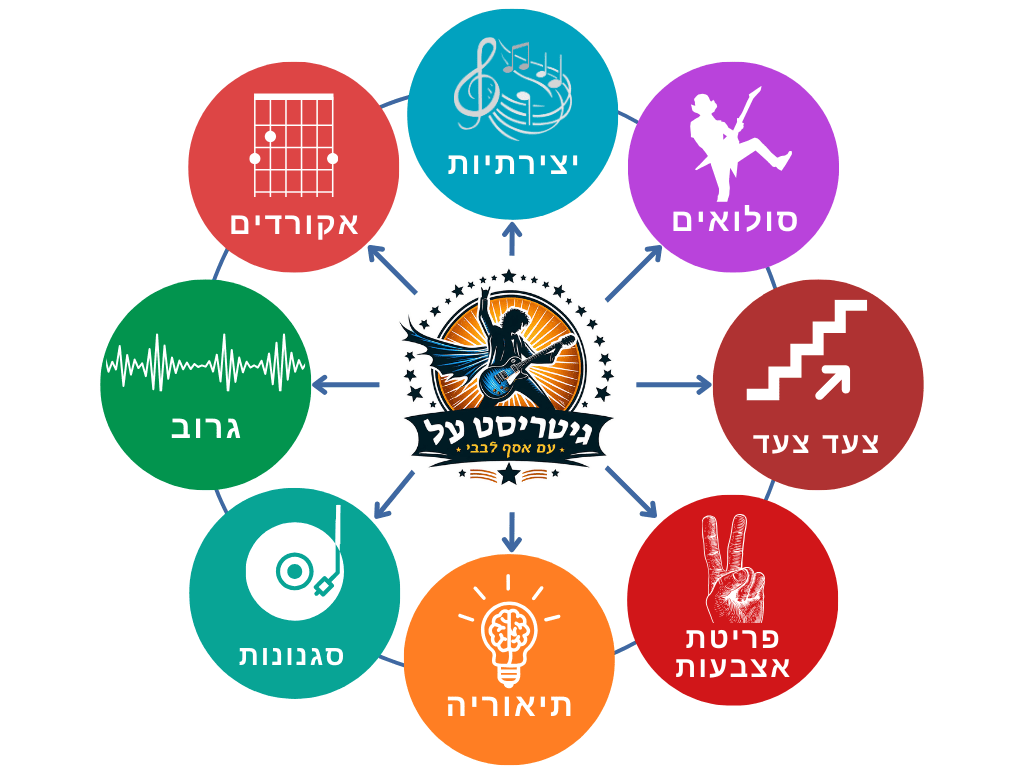 תכנית הגיטרה המהנה, המקיפה, הייחודית, והמטורפת ביותר בישראל לגיטריסטים מתחילים, המקיפה את כל הגיטרות, הסגנונות, הטכניקות והסודות - תוך פיתוח הסגנון המוזיקלי האישי
