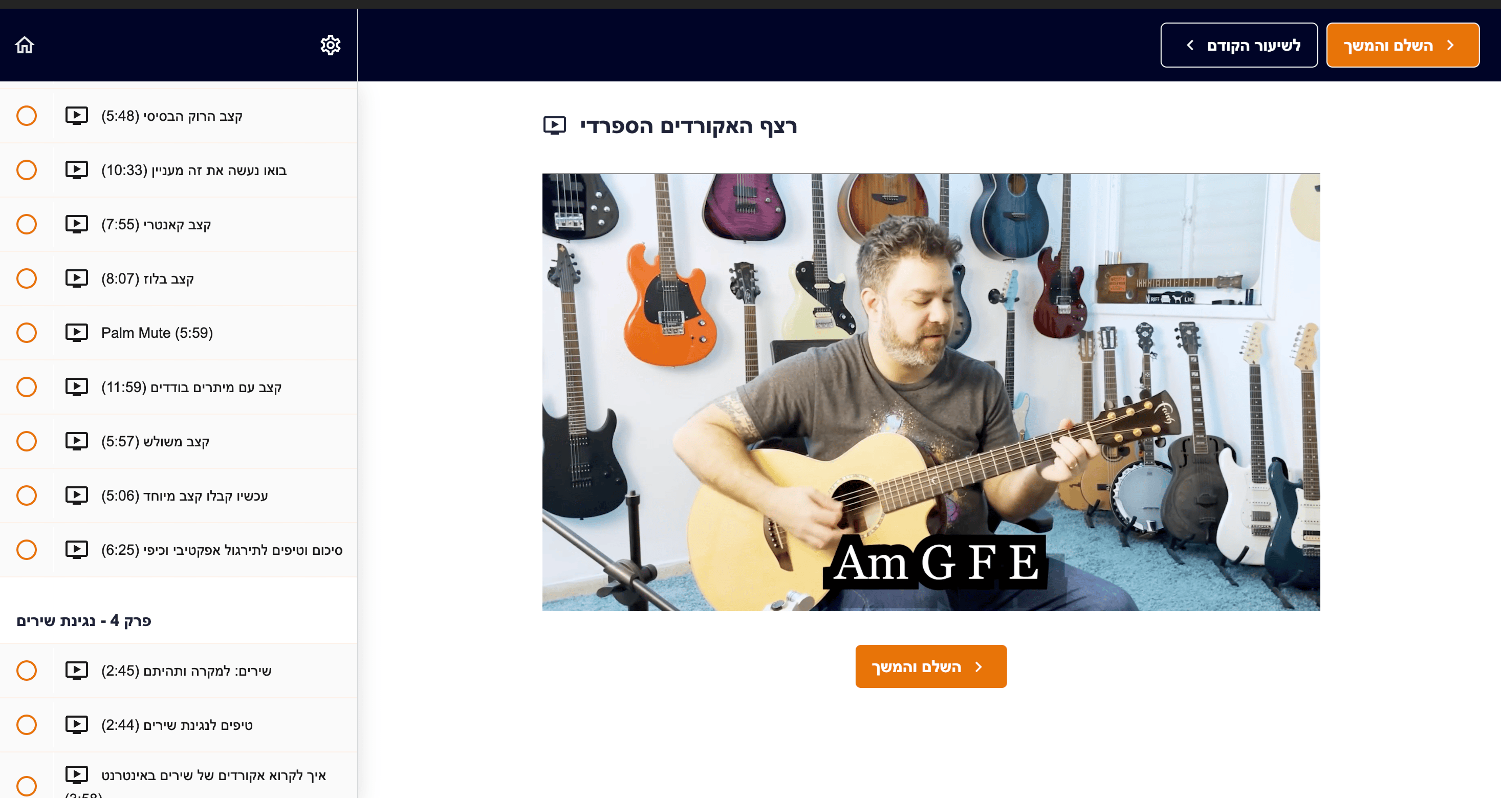 "הקורס הזה הוא בדיוק מה שחיפשתי. מעבר לזה שהוא מקצועי ומפוצץ בתוכן, הדבר המיוחד הוא הגישה - אני מוצא את עצמי מתייחס אחרת לנגינה, וממש מהר התחלתי להרגיש התקדמות ושיפור מטורף."